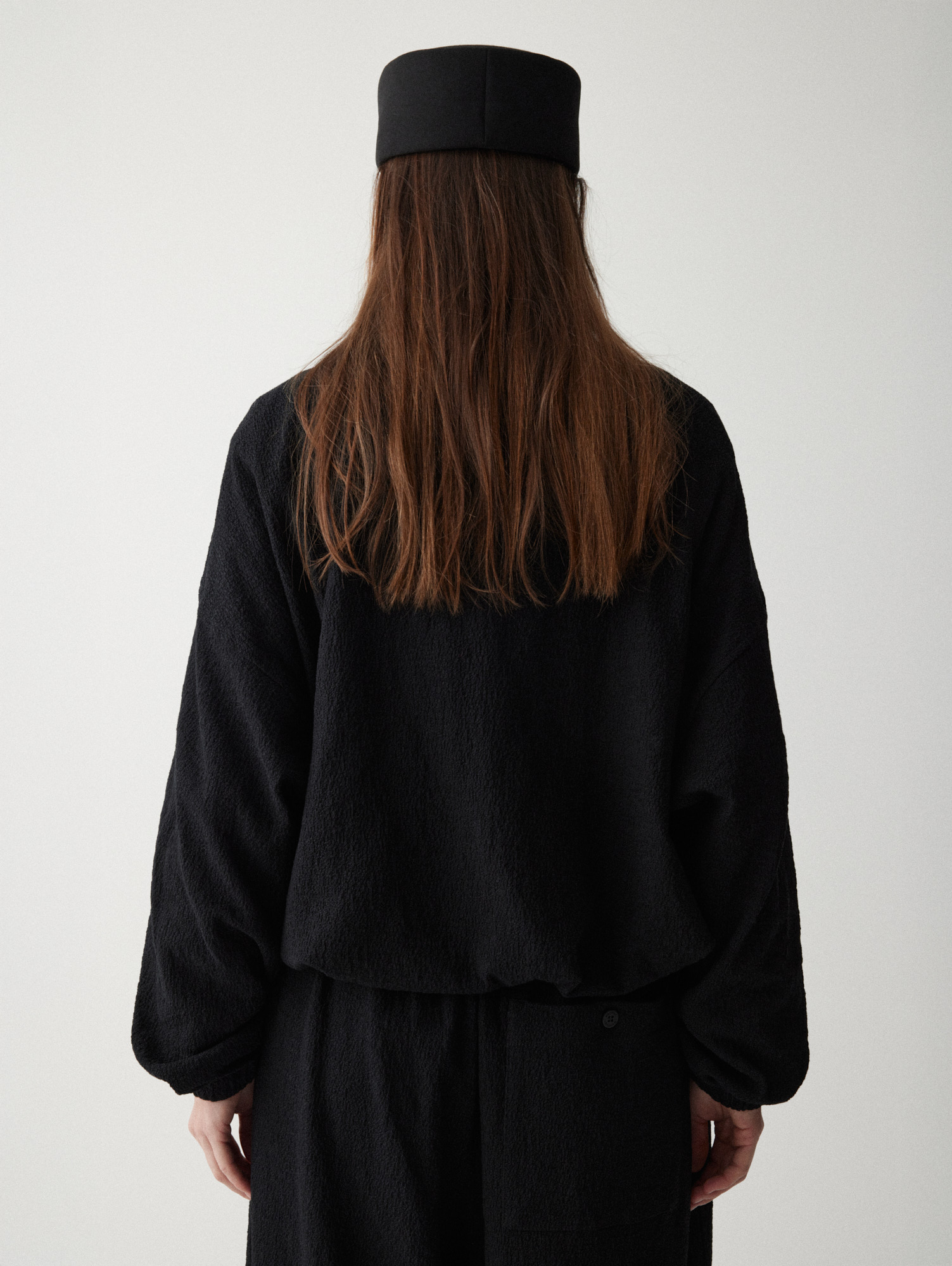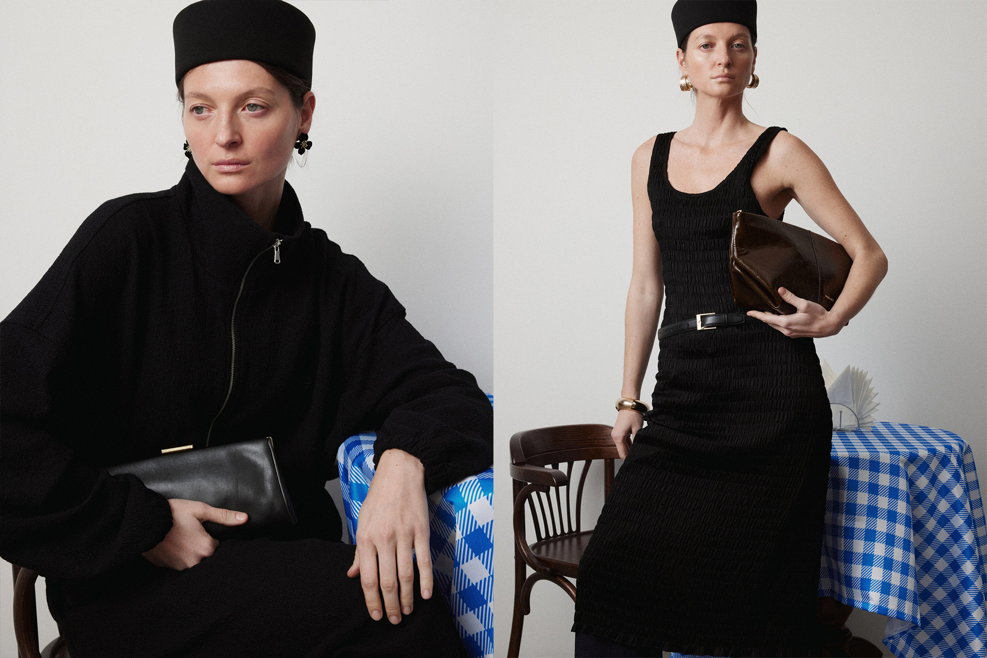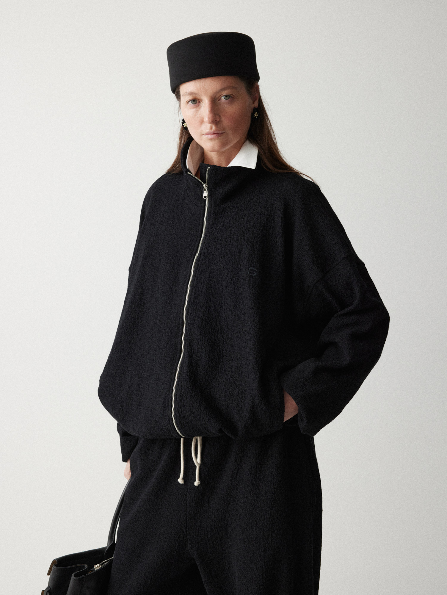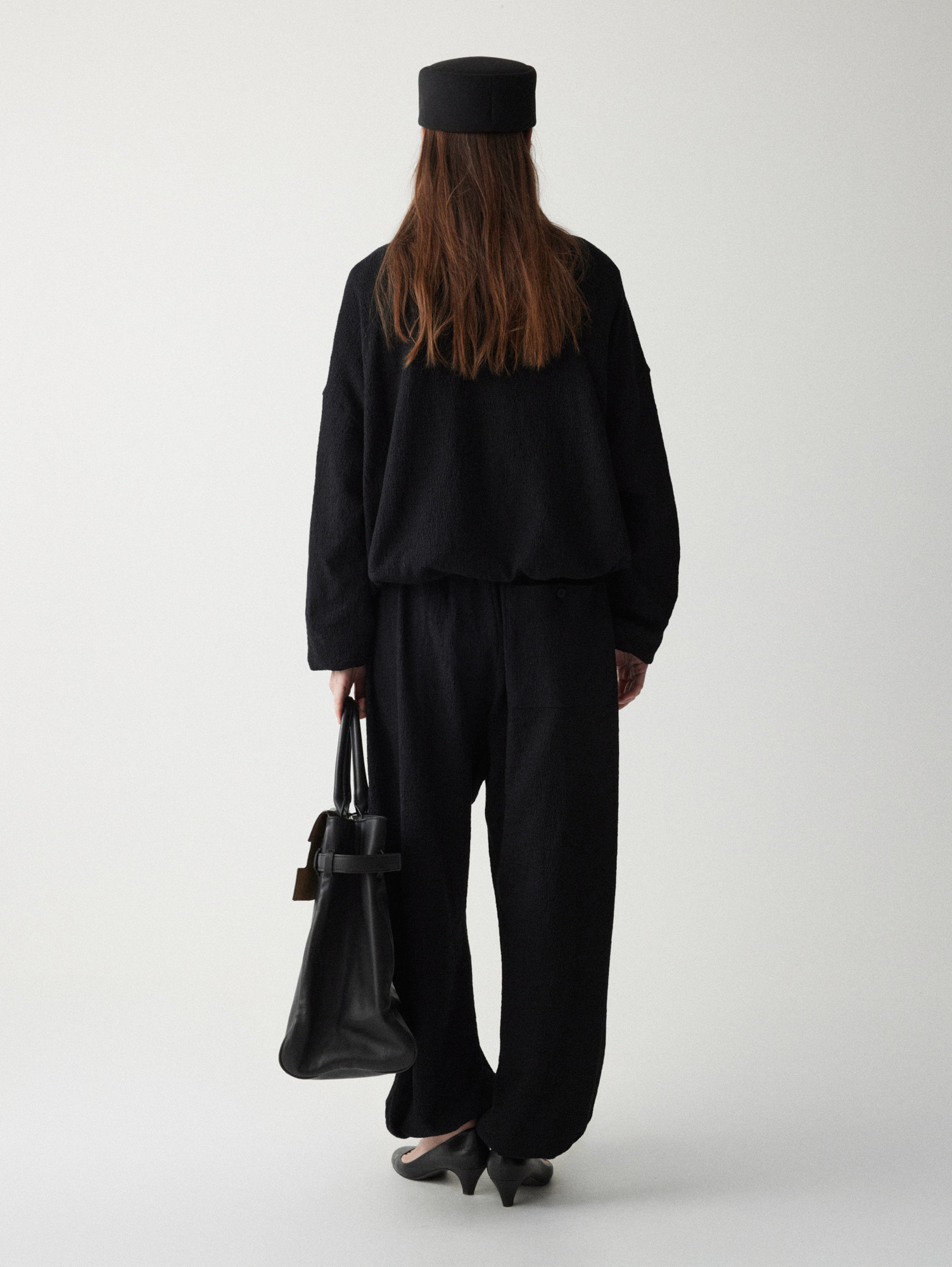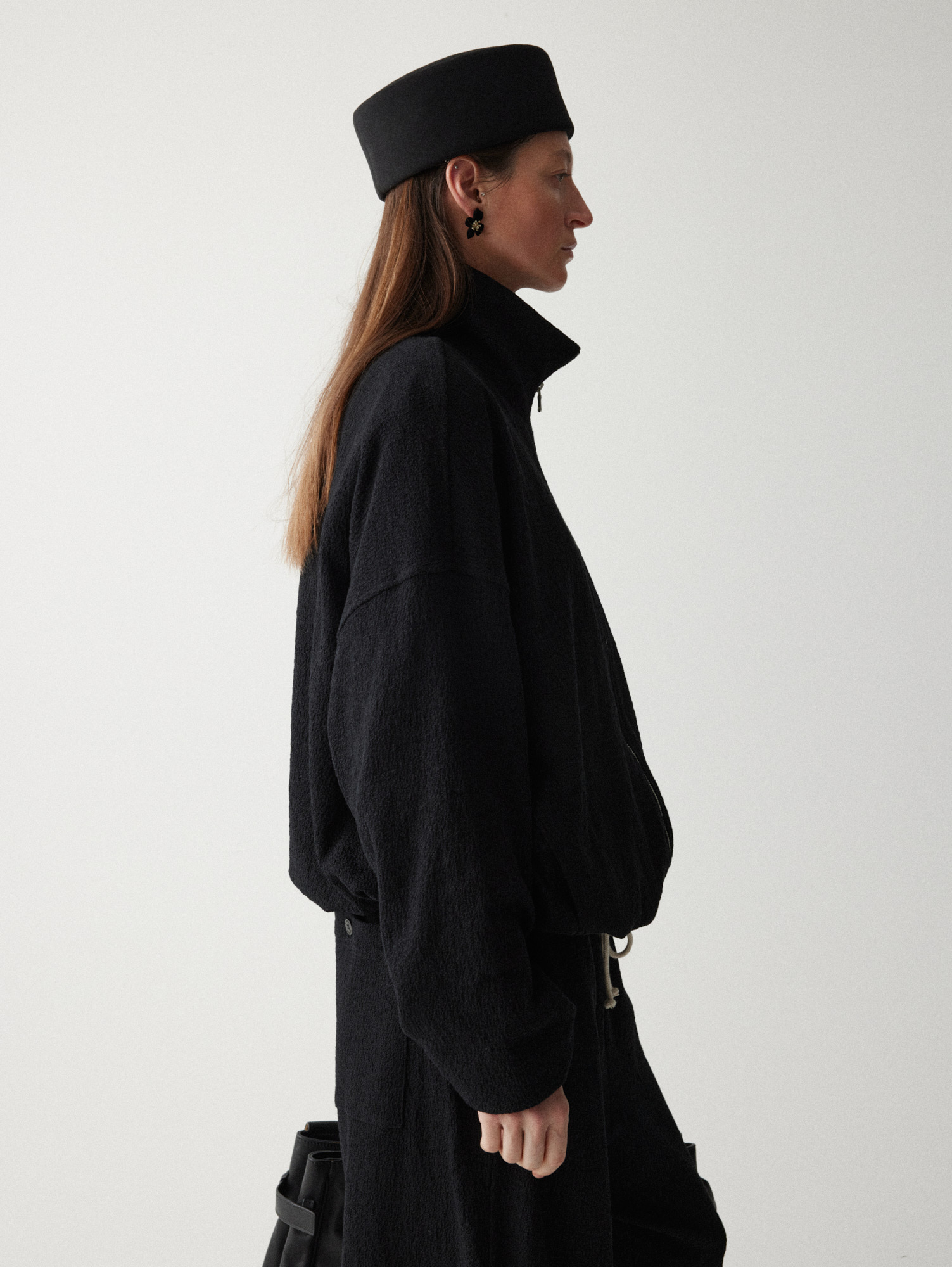 Рекомендуем стилизовать с: юбкой Senora, выполненной из того же серо-синего шерстяного материала, расслабленными джоггерами Pastor или костюмными Sarria, а также играть на контрастах силуэтов, завершая прилегающее платье Slim объемным кейпом.