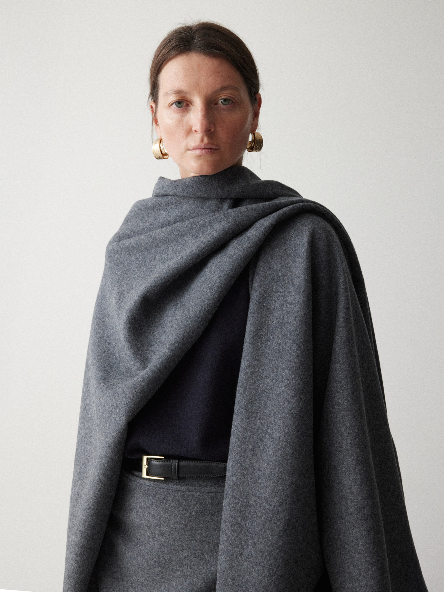 Senora отличается своей функциональностью: его можно носить самостоятельно, задрапировать как шарф-палантин, подпоясать ремнем или утеплить верхнюю одежду, надев накидку поверх.