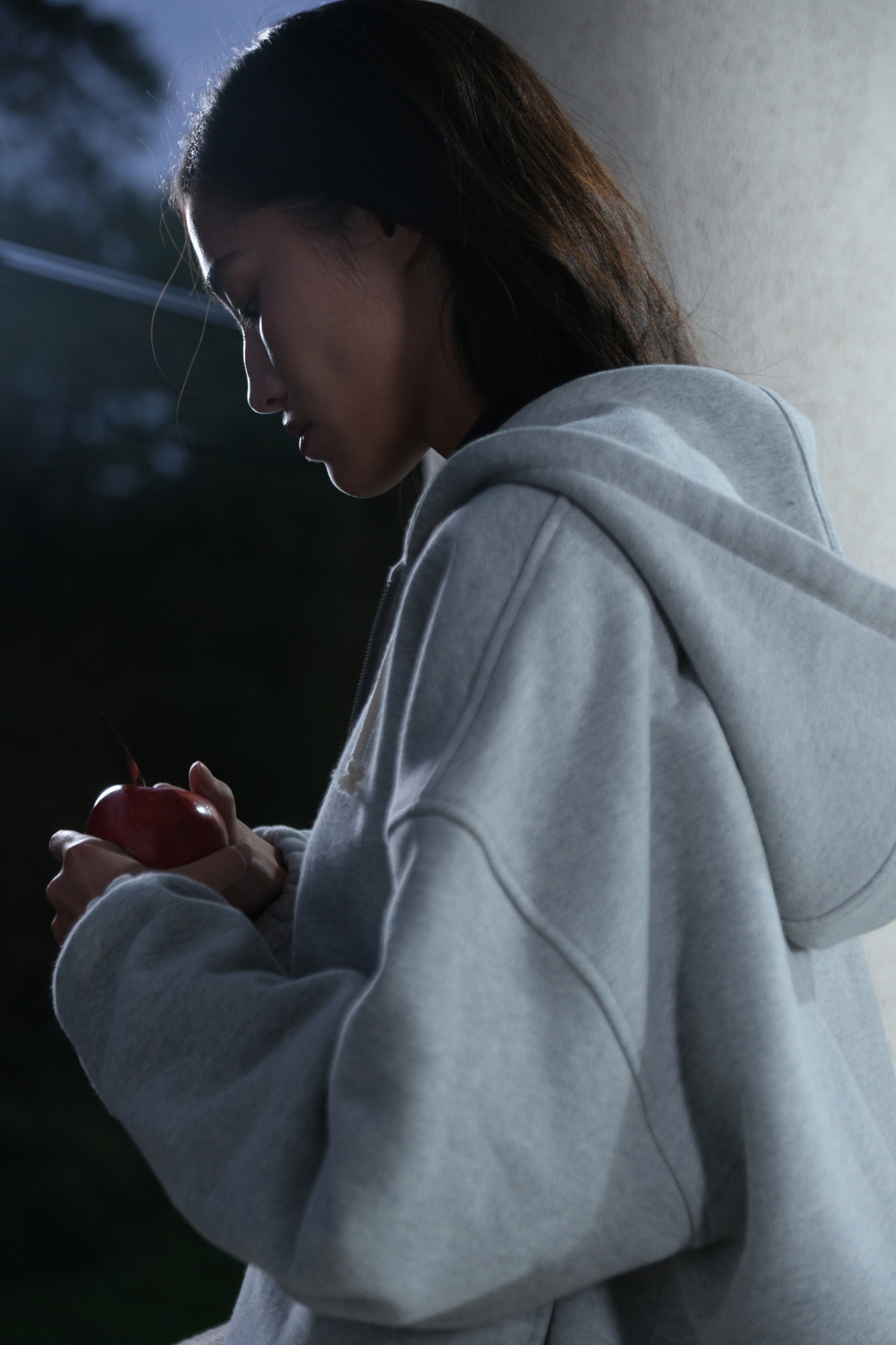 Лонслив из тонкого португальского трикотажа с текстурой «slub», мягко облегающий фигуру. У горловины расположен авторский принт, а тонкая окантовка из основной ткани аккуратно обрамляет вырез. Плечи на естественном месте, рукава слегка удлинены, создавая уникальный силуэт.