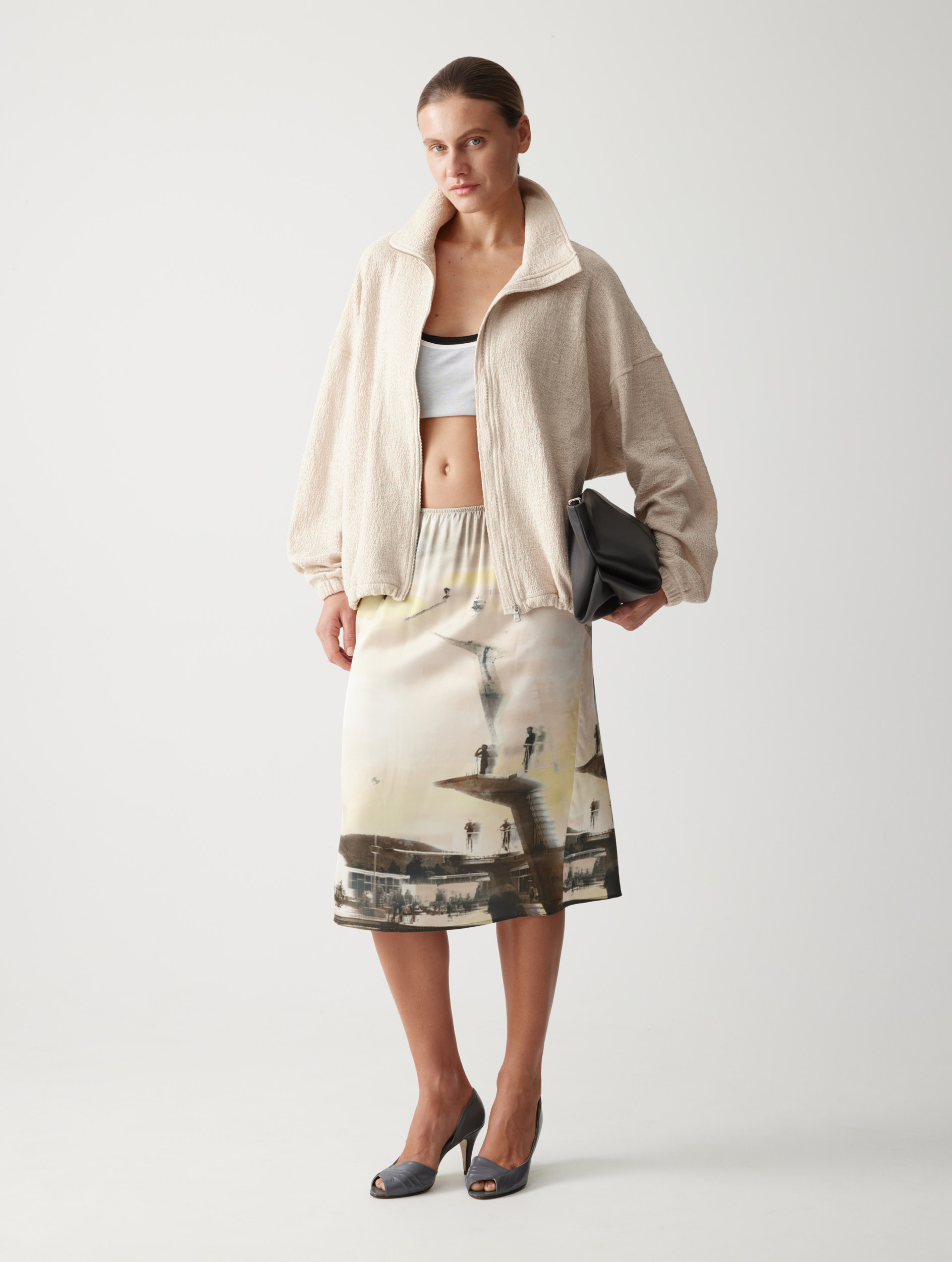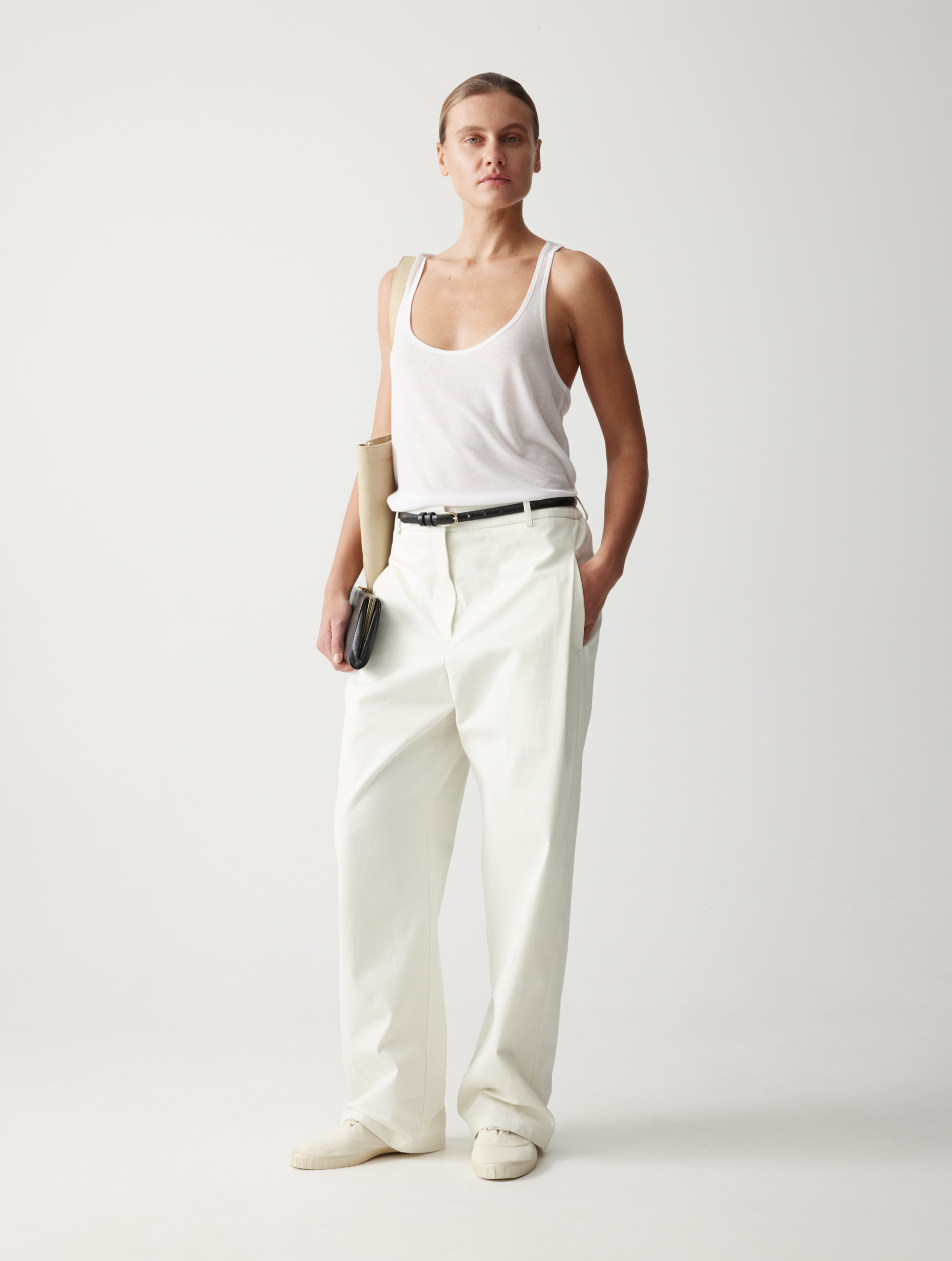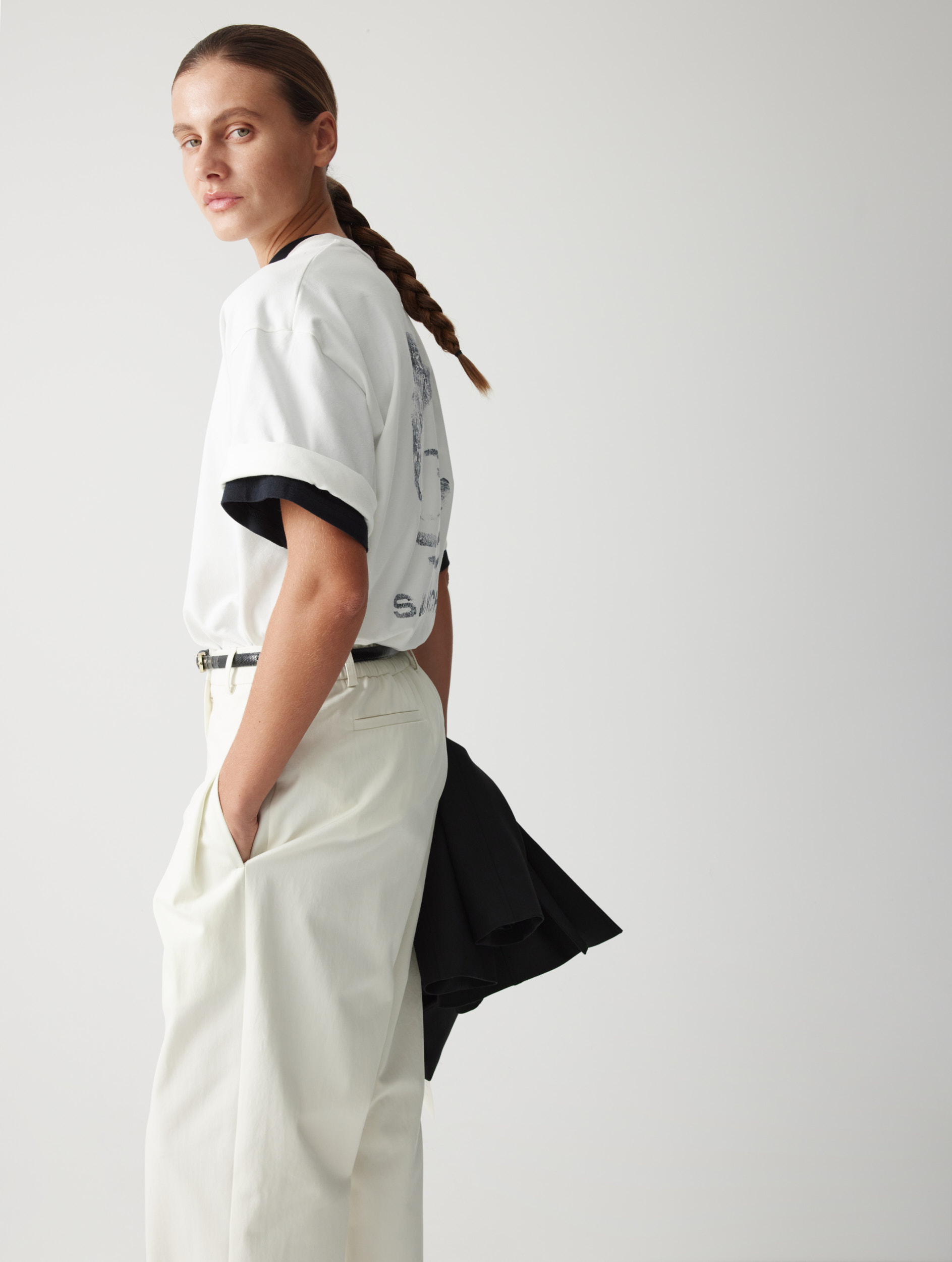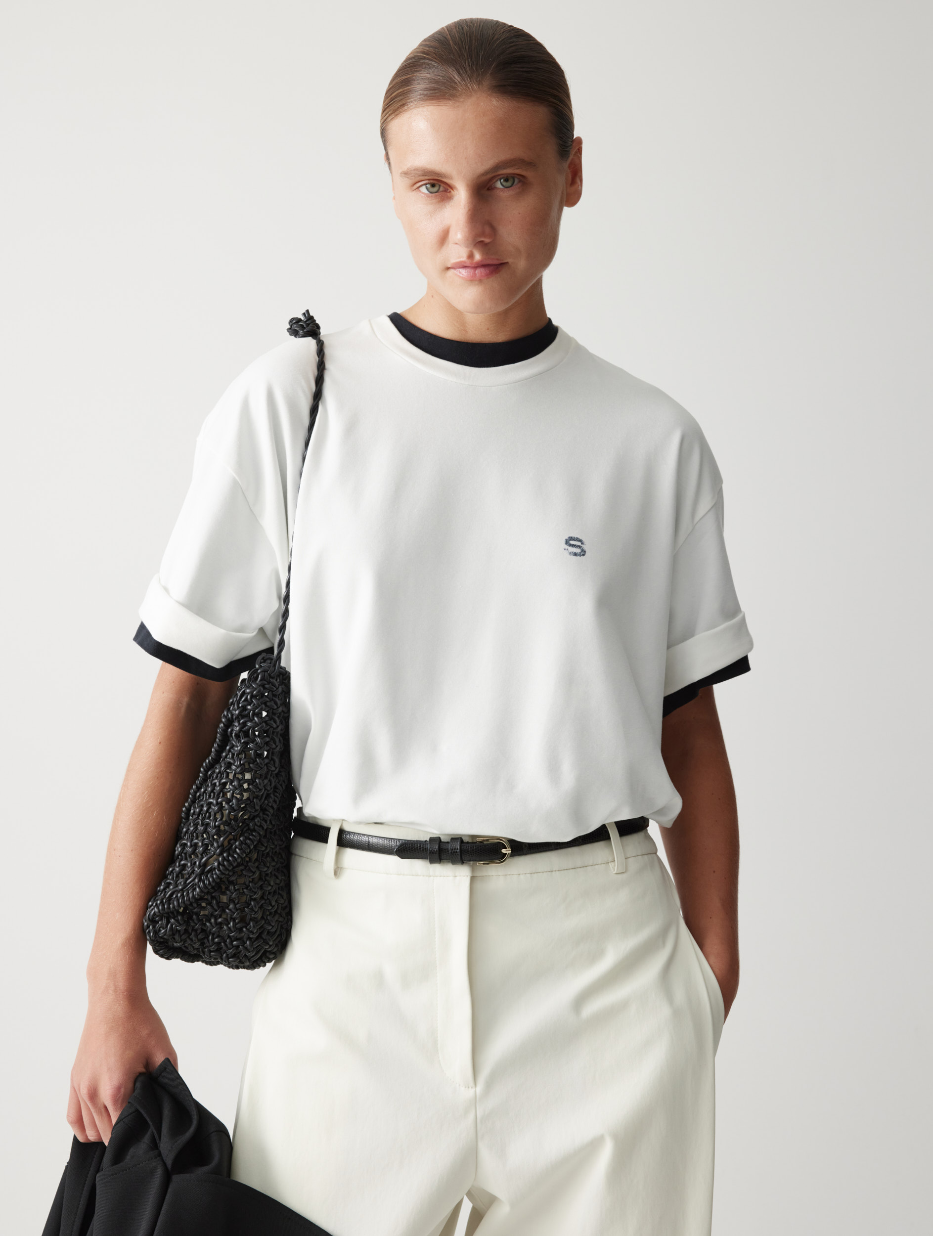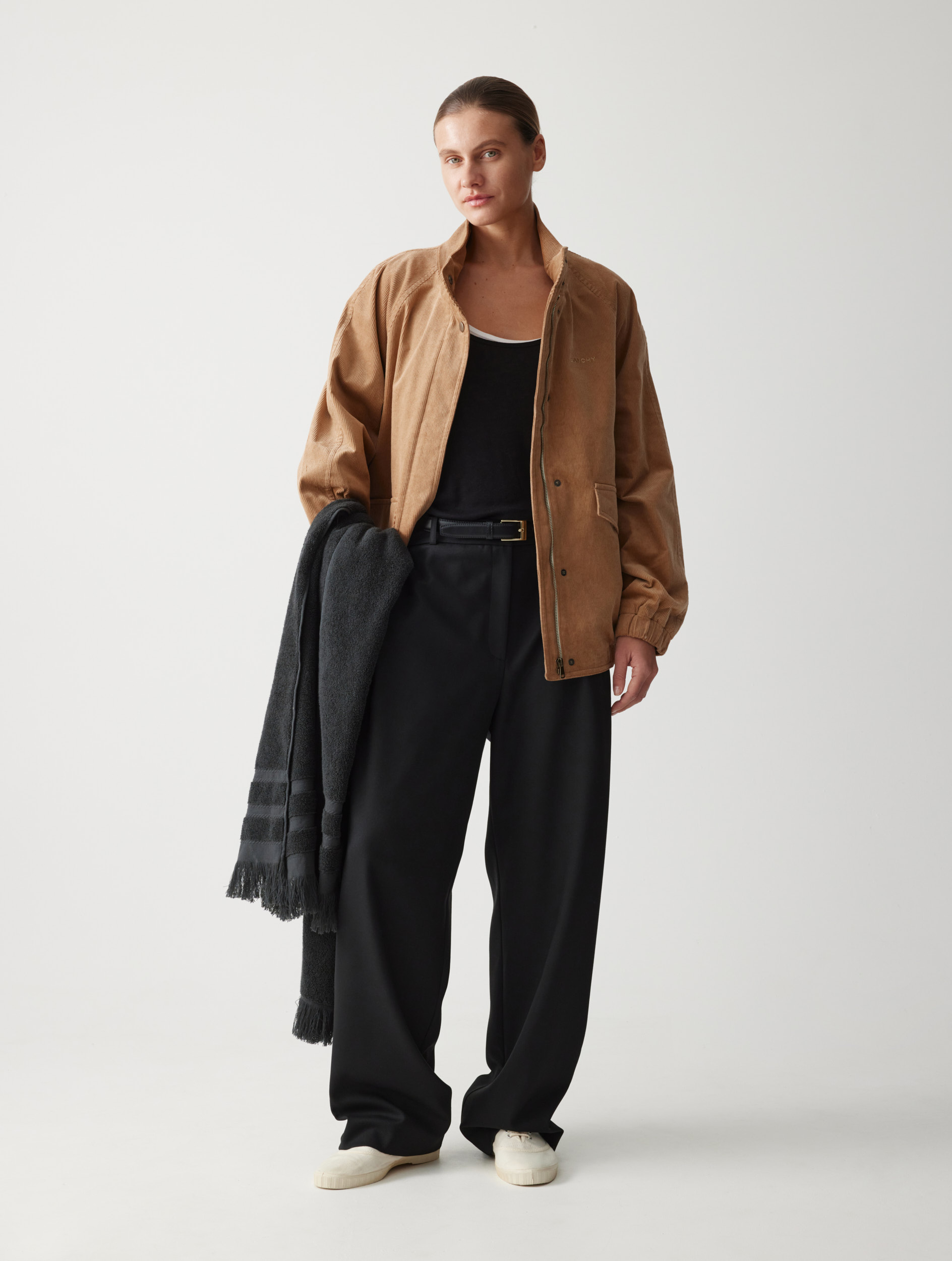 Рекомендуем сочетать с различными изделиями — от расслабленных костюмных брюк и фактурных джоггеров до женственных юбок. Плащ легко интегрируется в разные образы.