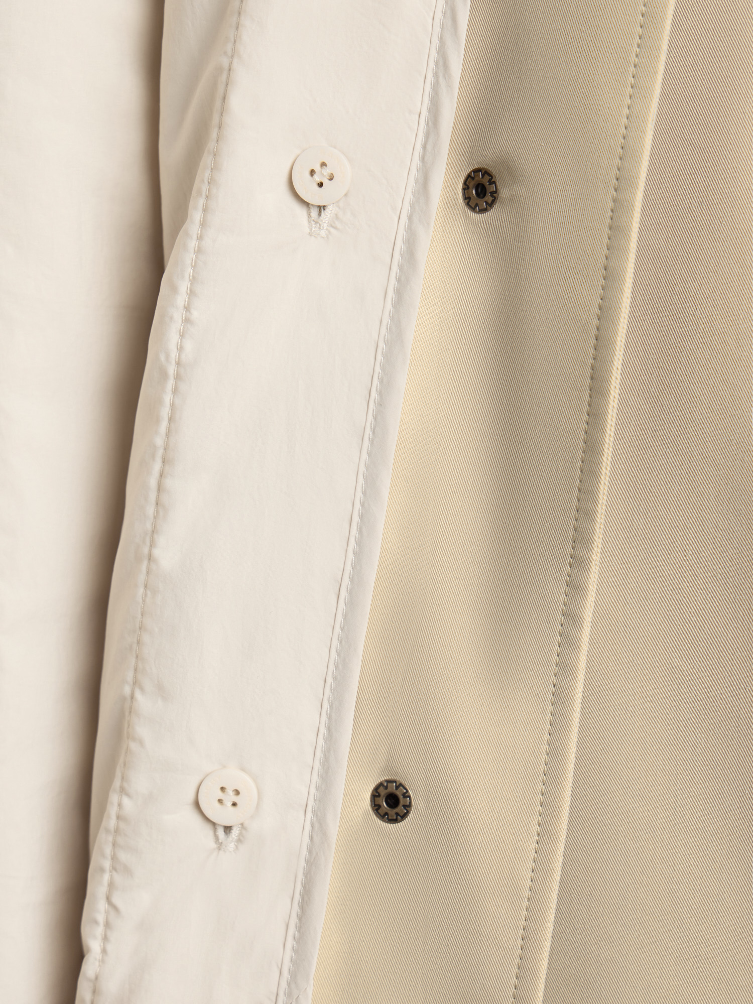 Два изделия в одном — хлопковый плащ с водоотталкивающей пропиткой и отстегивающаяся утепленная куртка внутри. Их можно носить вместе или по отдельности.