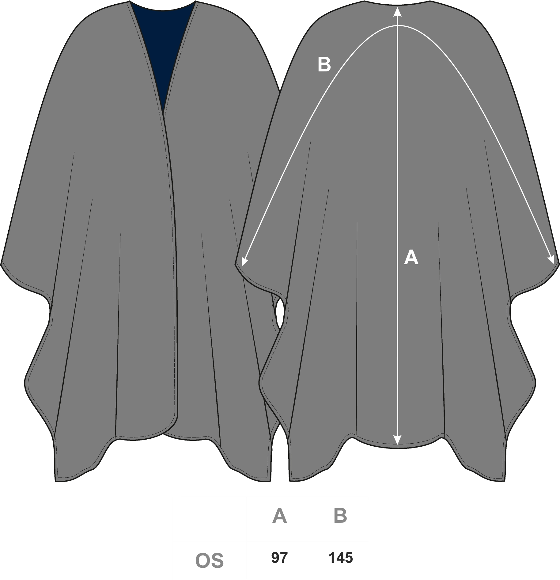 Двусторонняя накидка-кейп из мягкой virgin wool — высококачественной шерсти, не подвергавшейся переработке. Внешняя сторона серого оттенка, внутренняя — темно-синего, меняйте их в зависимости от настроения образа, раскрывая потенциал кейпа.