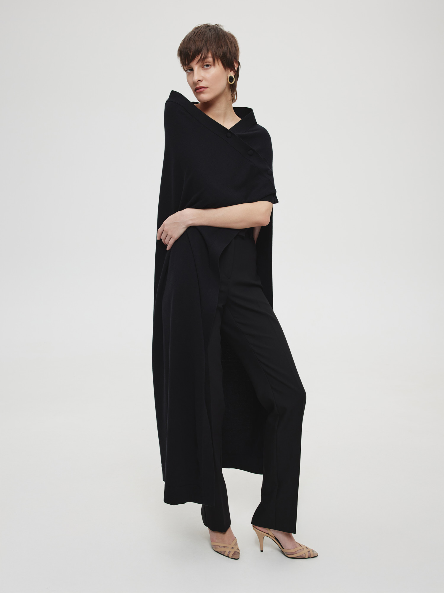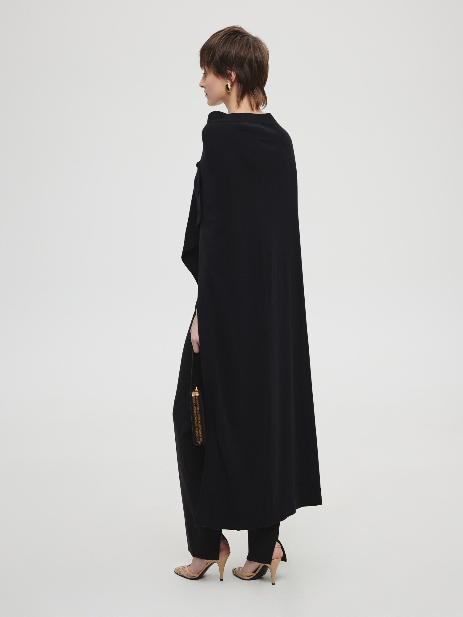 Платье-комбинация из легкого, почти невесомого струящегося материала с аккуратным V-вырезом. Модель можно носить самостоятельно или использовать как первый слой в сочетании с юбками и полупрозрачными платьями.