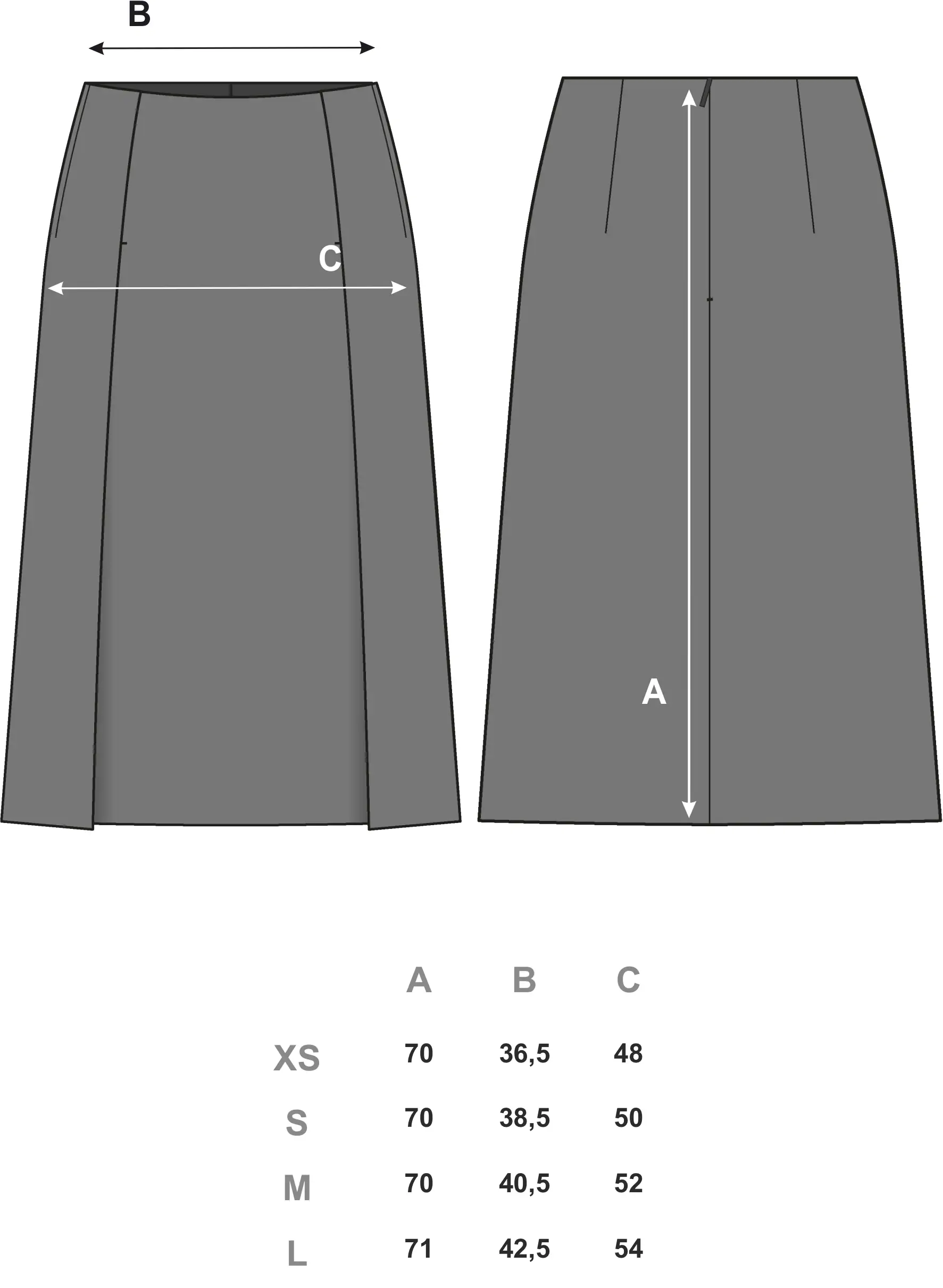 Юбка легкого А-силуэта с двумя высокими разрезами-шлицами спереди, эффектно подчеркивающими ноги при ходьбе. Материал модели — смесовая итальянская шерсть, изготовленная по заказу SANCHY. Юбка фиксируется на потайную молнию сзади.
