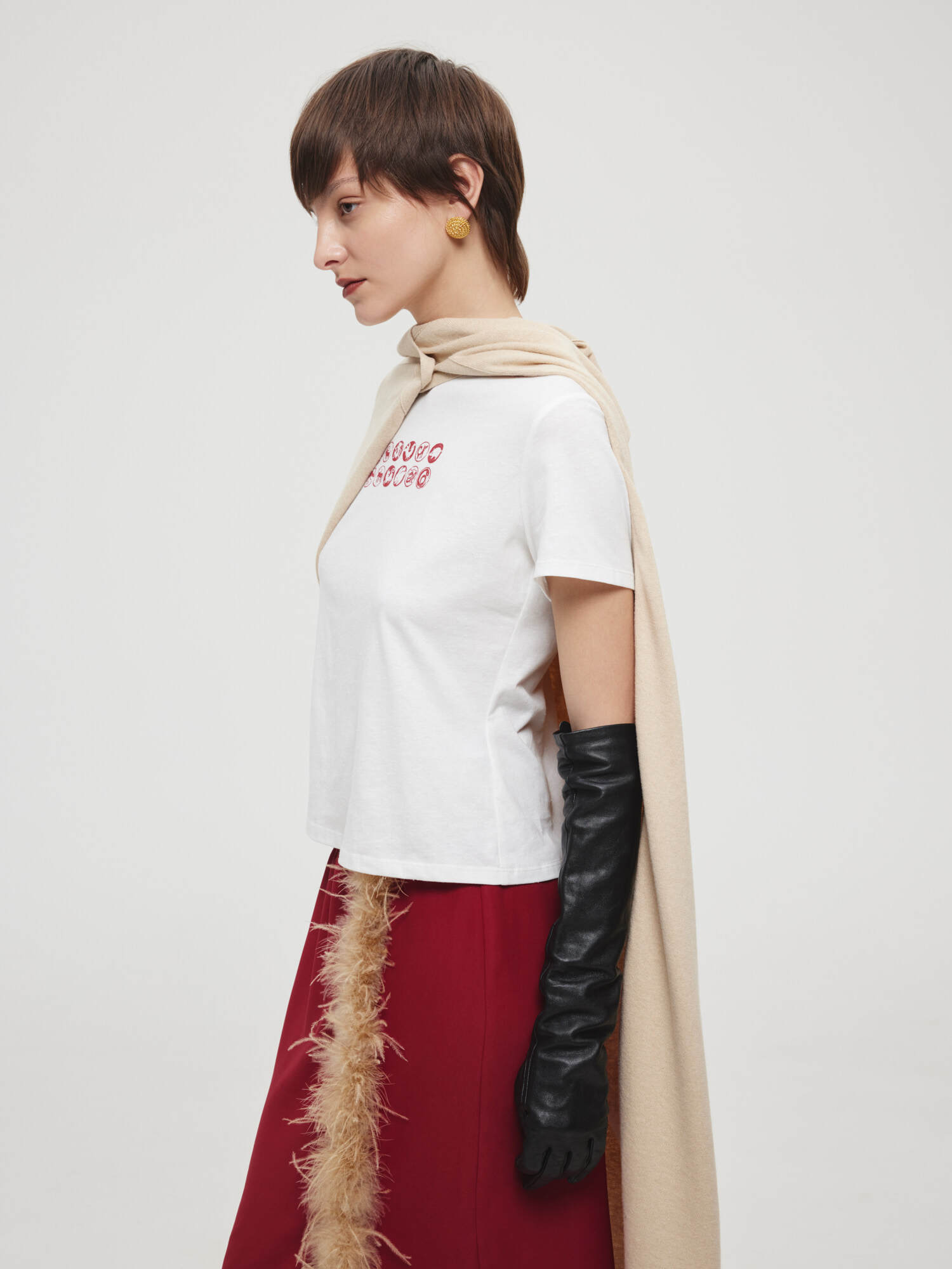 Юбку можно стилизовать как в вечерних, так и в повседневных образах, регулируя степень нарядности с помощью съемного боа и подбирая верх — от футболок до вязаного трикотажа.