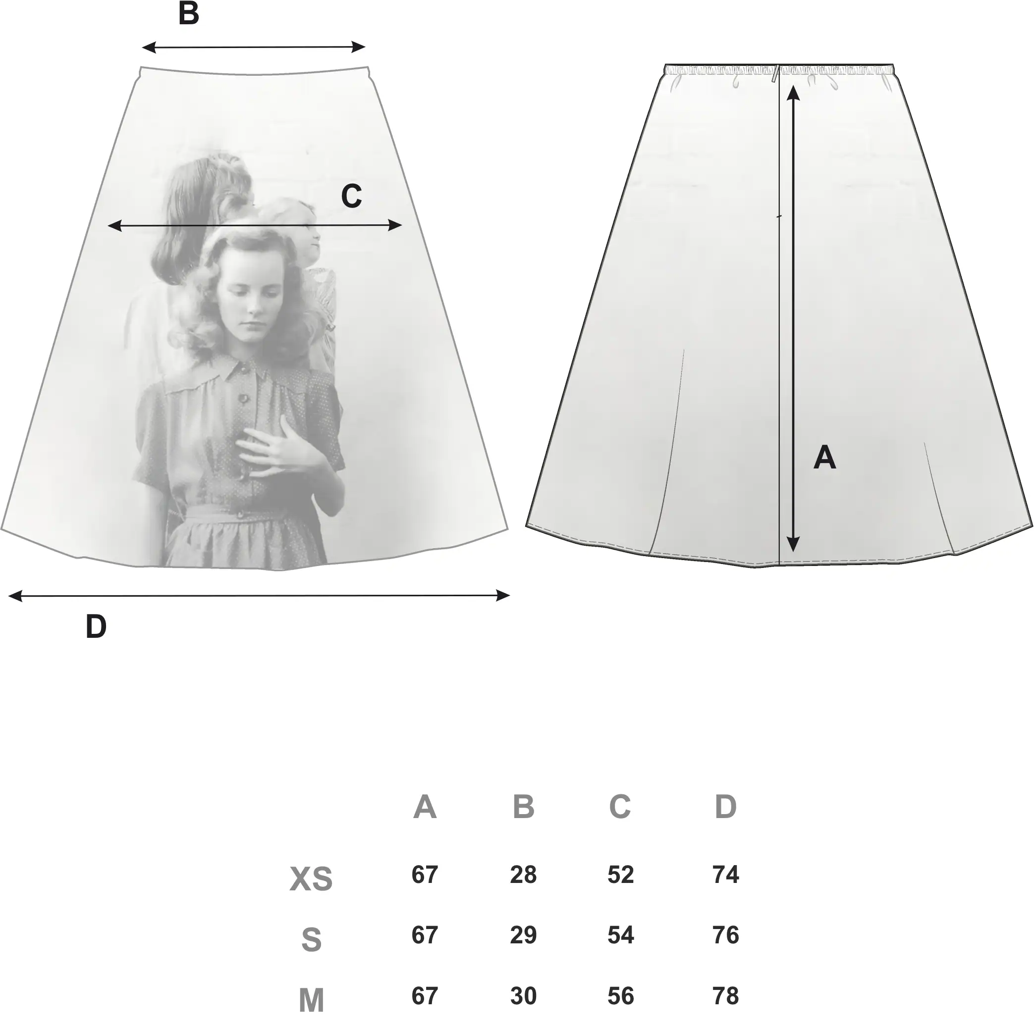 Лимитированная юбка А-силуэта из шелкового полупрозрачного шифона с авторским принтом, разработанным нашей командой. Пояс обработан тонкой резинкой. Внутри предусмотрена аккуратная чистая обработка швов — деталь, особенно важная для полупрозрачной ткани.