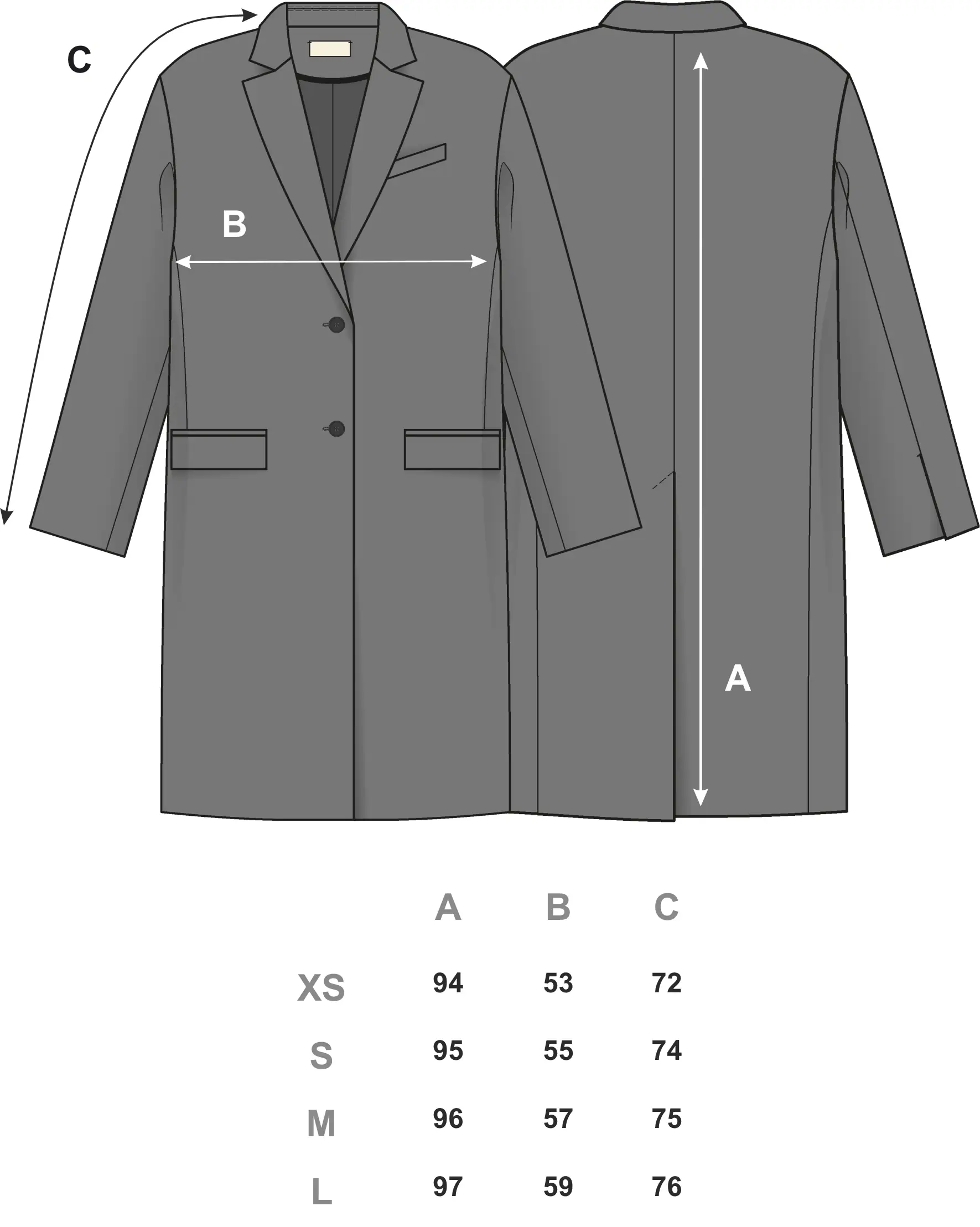 Прямой удлиненный пиджак со спущенным мягким плечом. Материал модели — смесовая итальянская шерсть, изготовленная по заказу SANCHY.