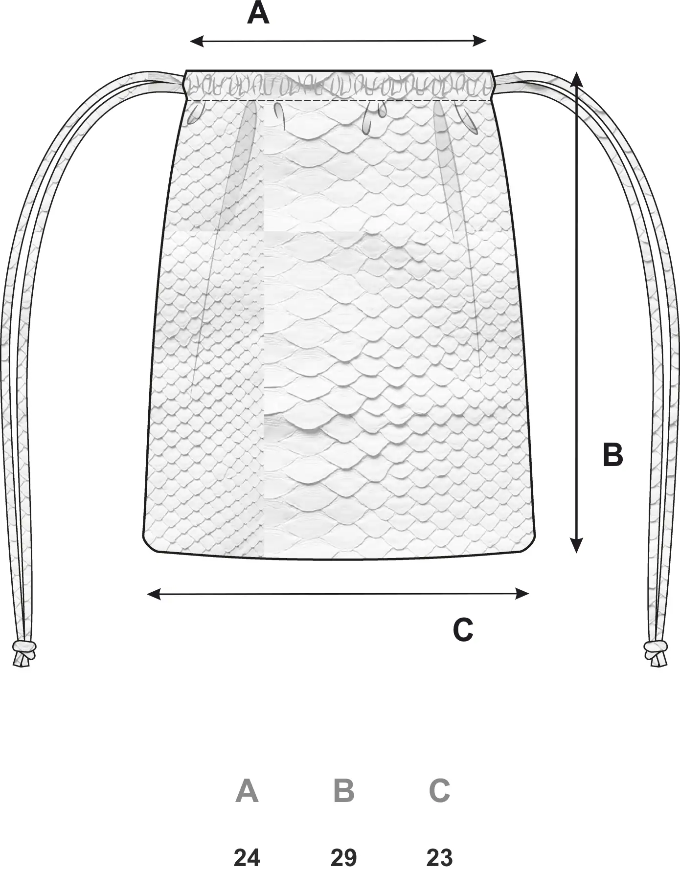 Лимитированная сумка-мешок из натуральной кожи с выделкой под фактурный питон светлого оттенка. Верх фиксируется кулиской с тонкими кожаными завязками.